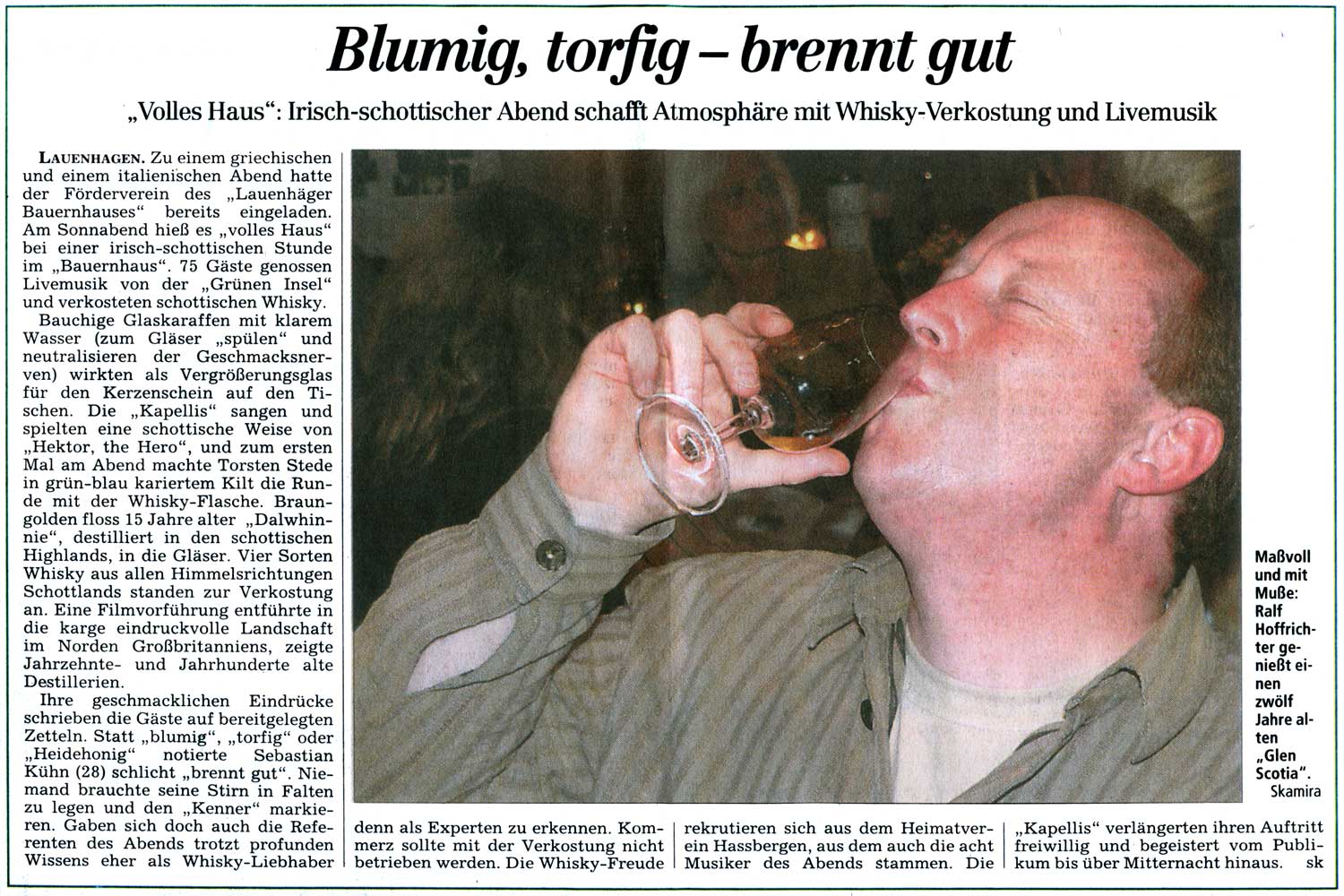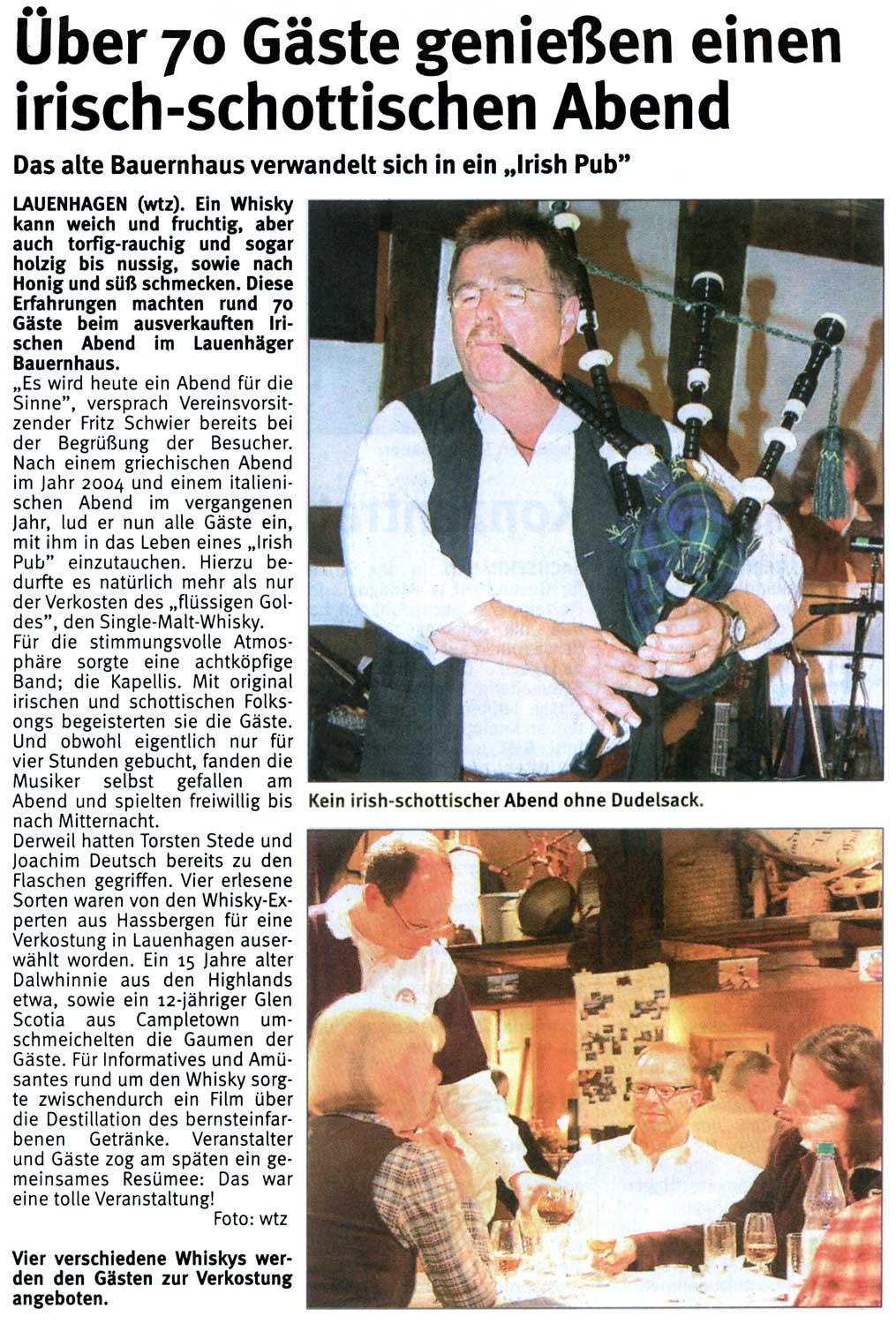Bericht über Irish Night in Lauenhagen (mit Whiskyprobe) (Schaumburger Nachrichten vom 23.10.2006)