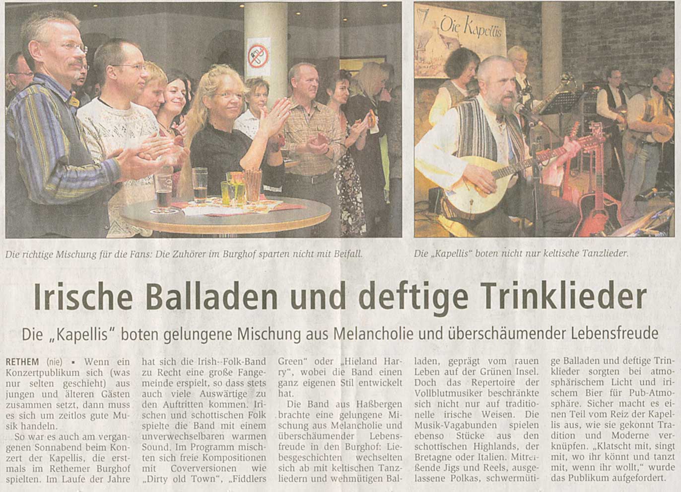 Bericht über 3. Irish Folk Night in Verden (Verdener Aller Zeitung vom 12.04.2006)