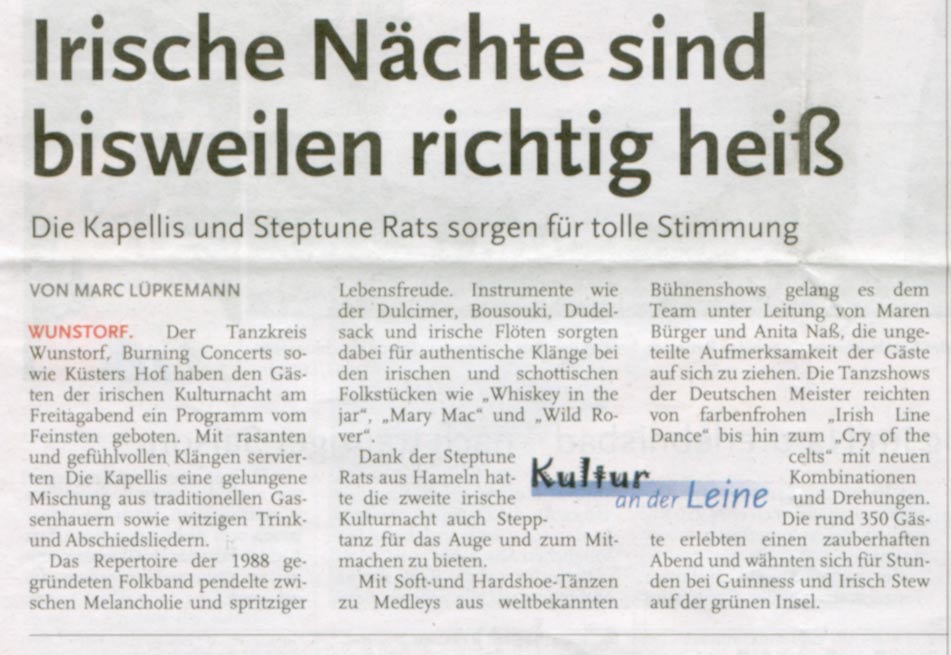 Bericht über Irish Folk Night in Wunstorf (Leine Zeitung vom 17.09.2007)